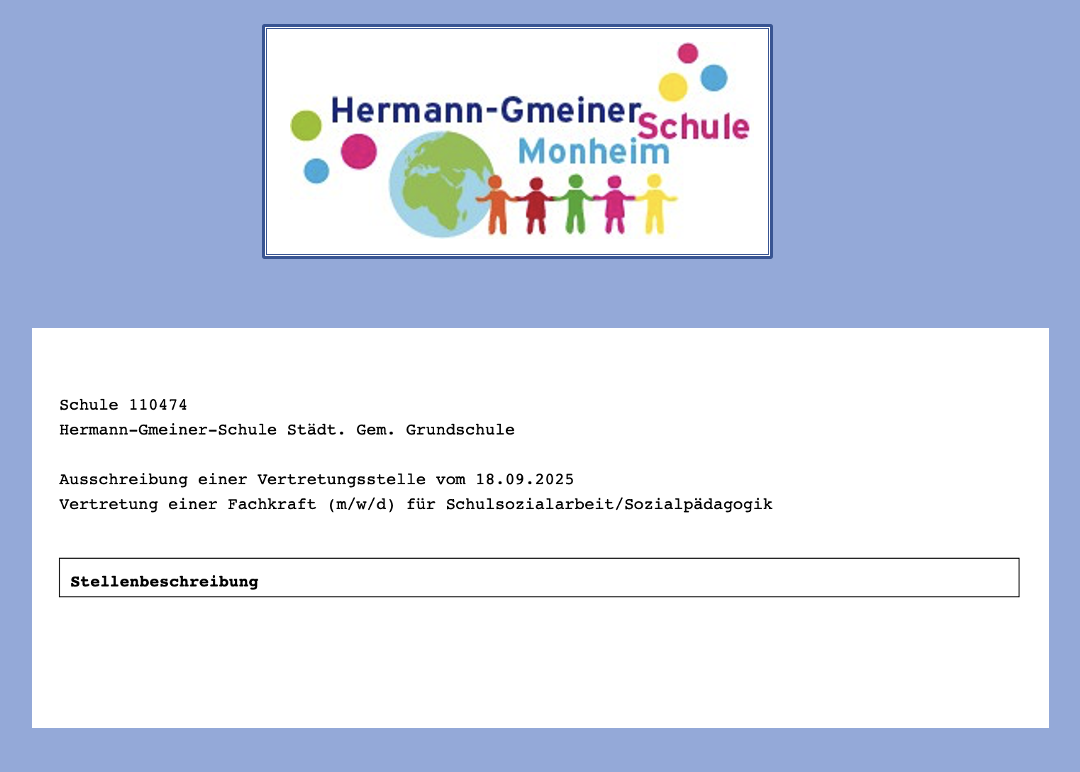 Mit Beginn des Schuljahres 2025/26 suchen wir für das Startchancen-Programm eine zusätzliche engagierte Fachkraft für Schulsozialarbeit/Sozialpädagogik.